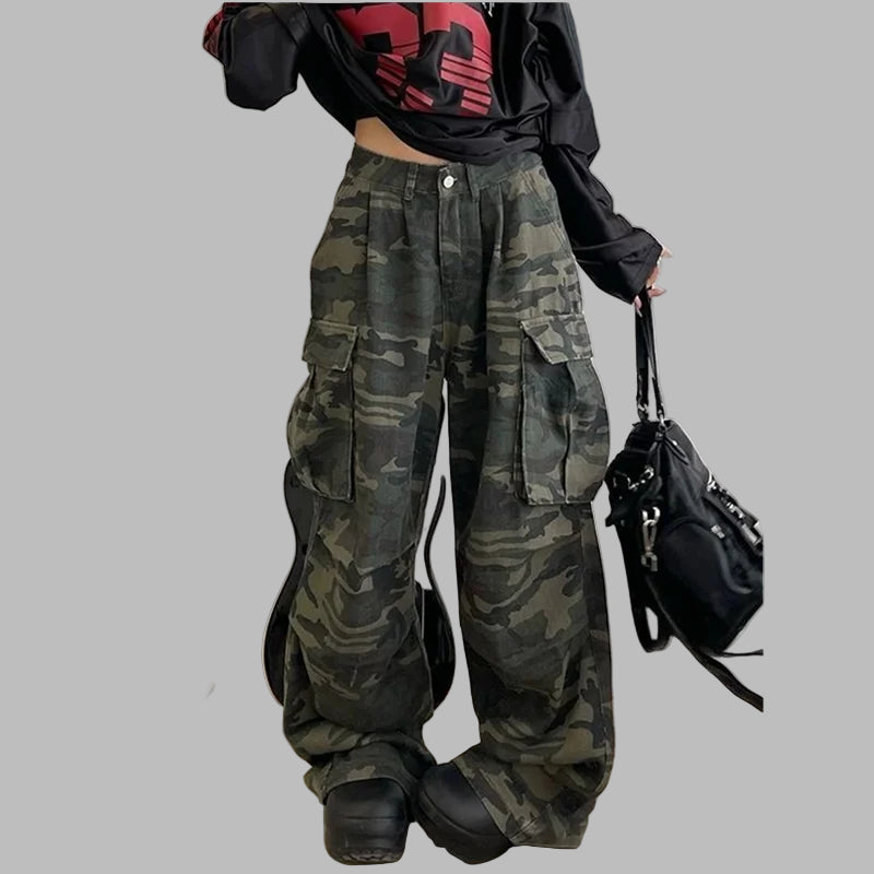 Pantaloni cargo bărbătești largi, stil punk grunge, camuflaj militar