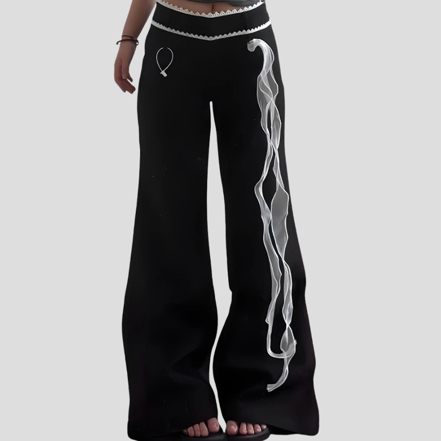 Pantaloni evazați damă stil punk cu imprimeu fum