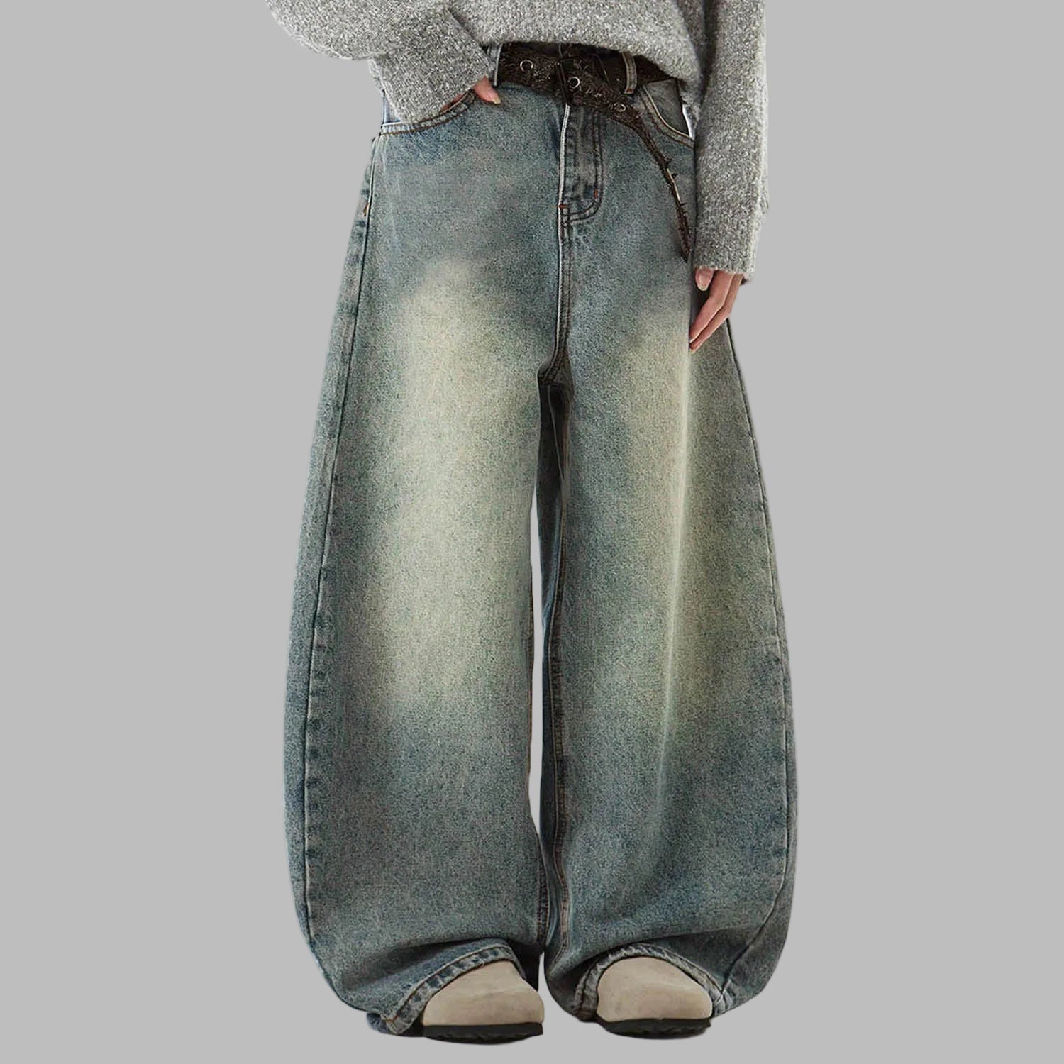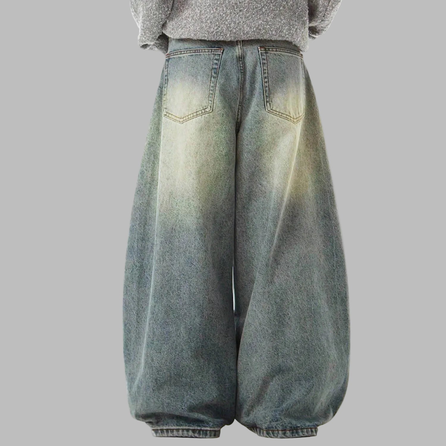 Pantaloni damă baggy grunge din denim gri, croială largă oversize