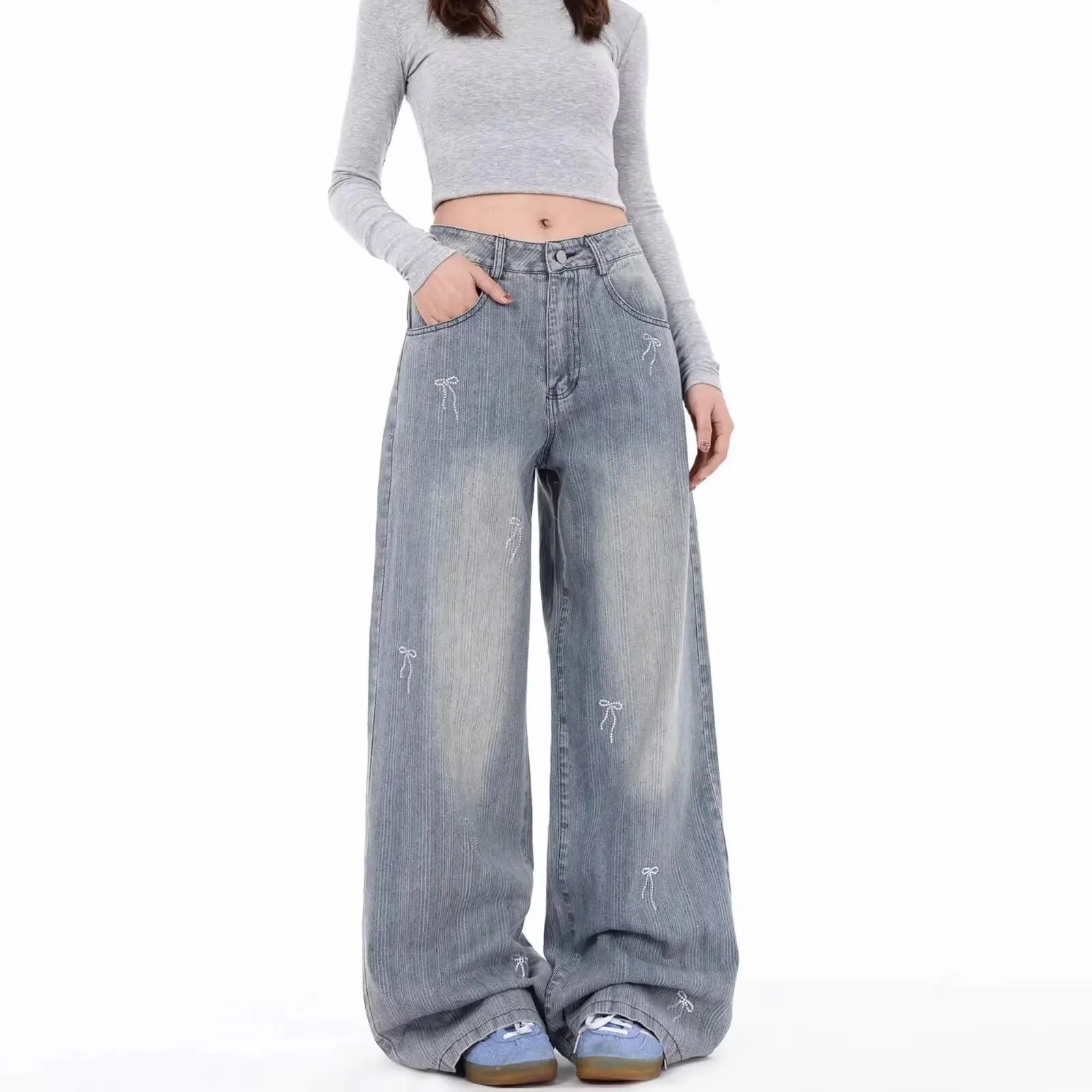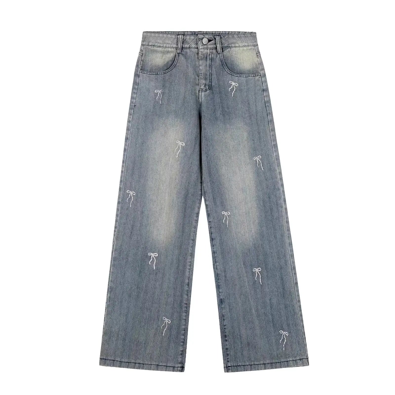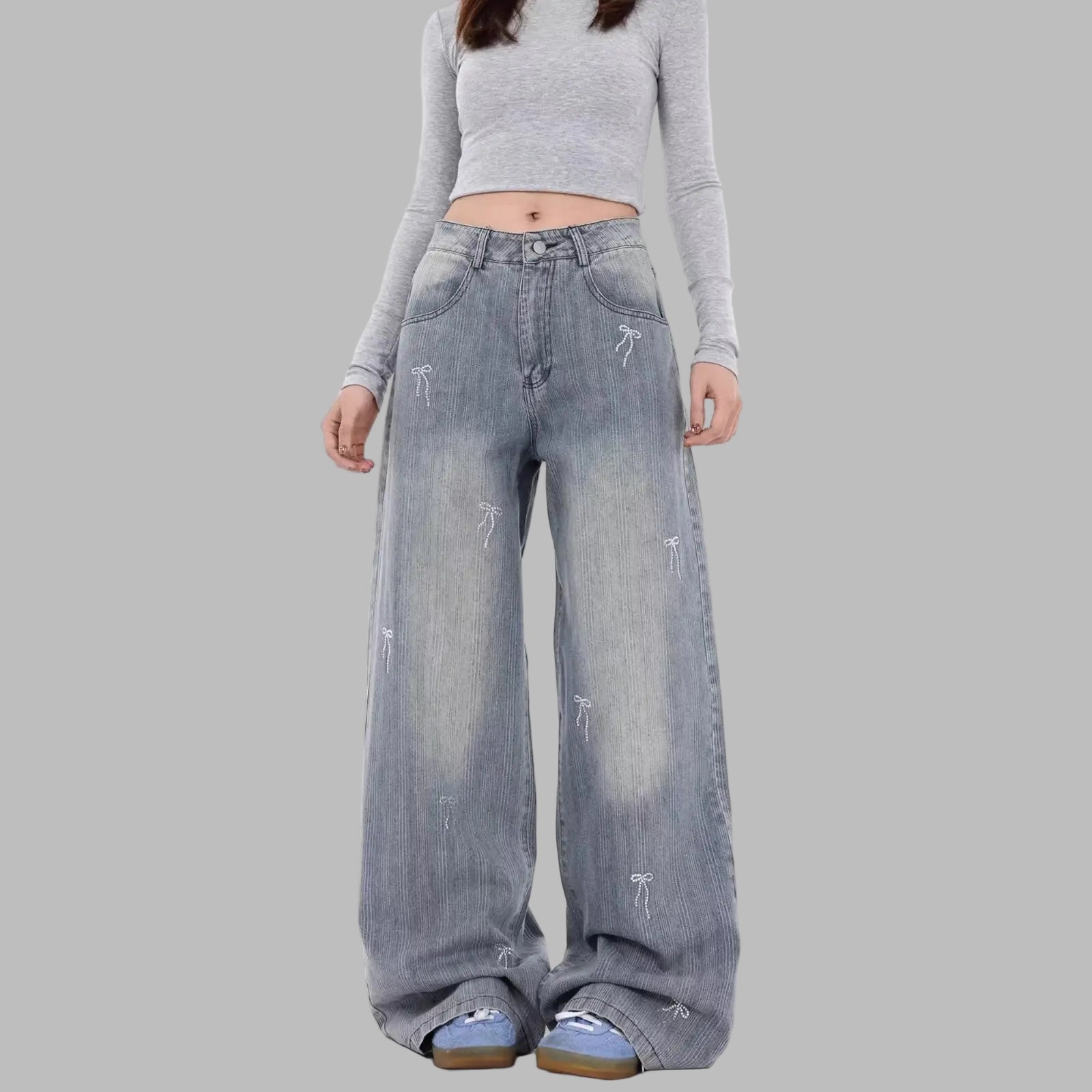 Pantaloni largi din denim grunge vintage cu panglici Vezi opțiunile
