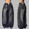 Pantaloni baggy gri din denim Metal cu lanțuri, stil grunge