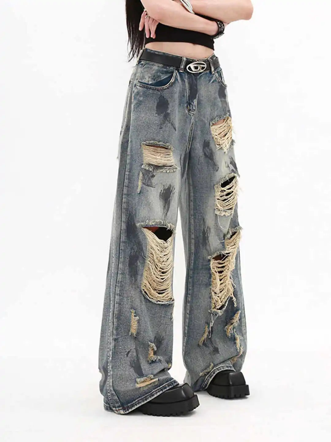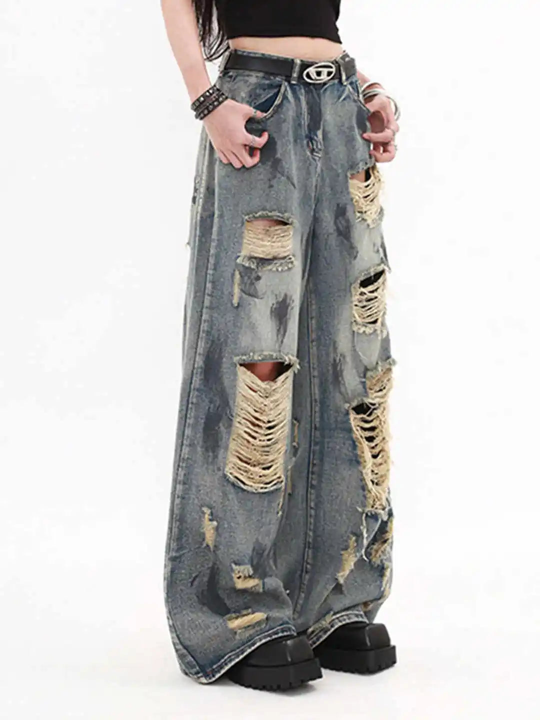 Blugi damă largi, rupți, stil grunge Vezi opțiunile