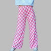 Pantaloni largi grunge în carouri roz-alb, stil punk