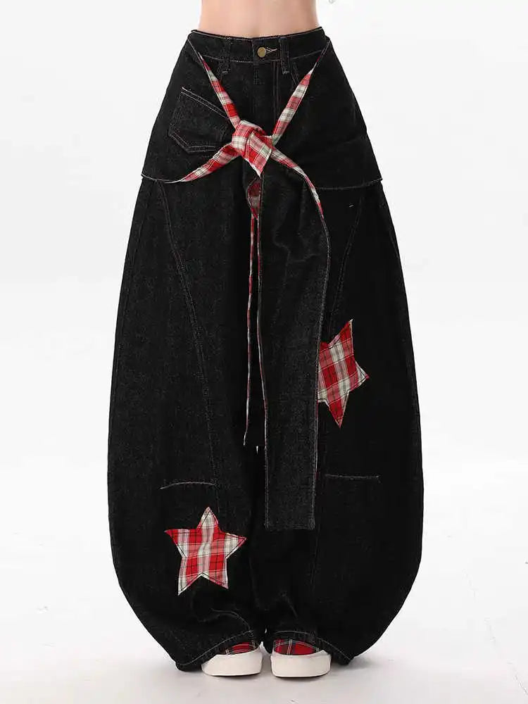 Pantaloni largi negri lungi cu stele, stil punk, damă, oversize