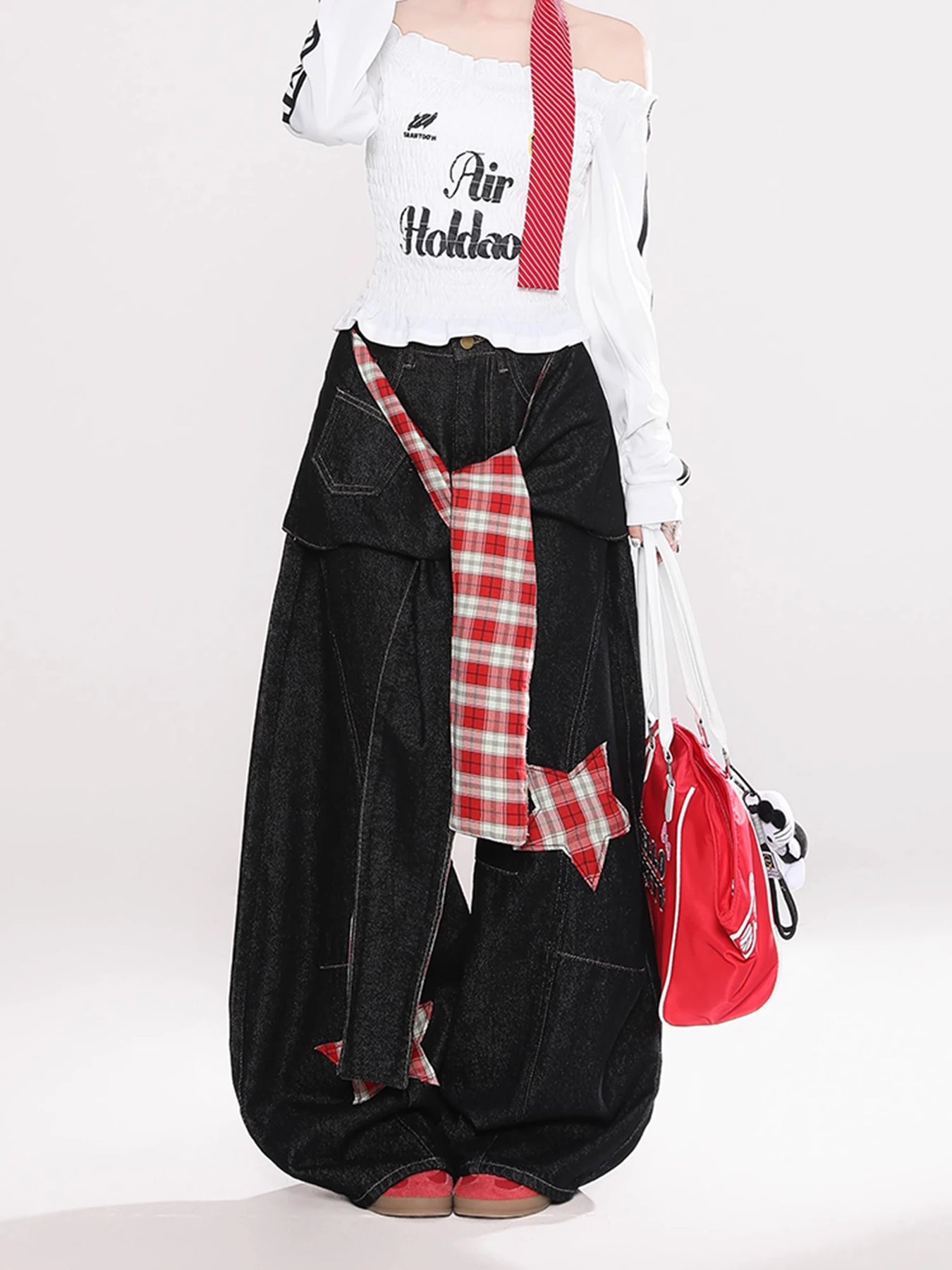 Pantaloni damă largi, lungi, negri, stil punk, cu stele, oversize Vezi opțiunile