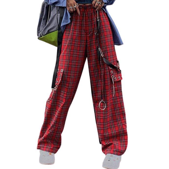 Pantaloni roșii în carouri