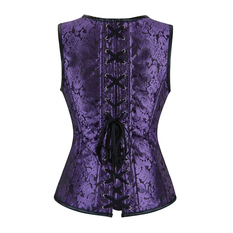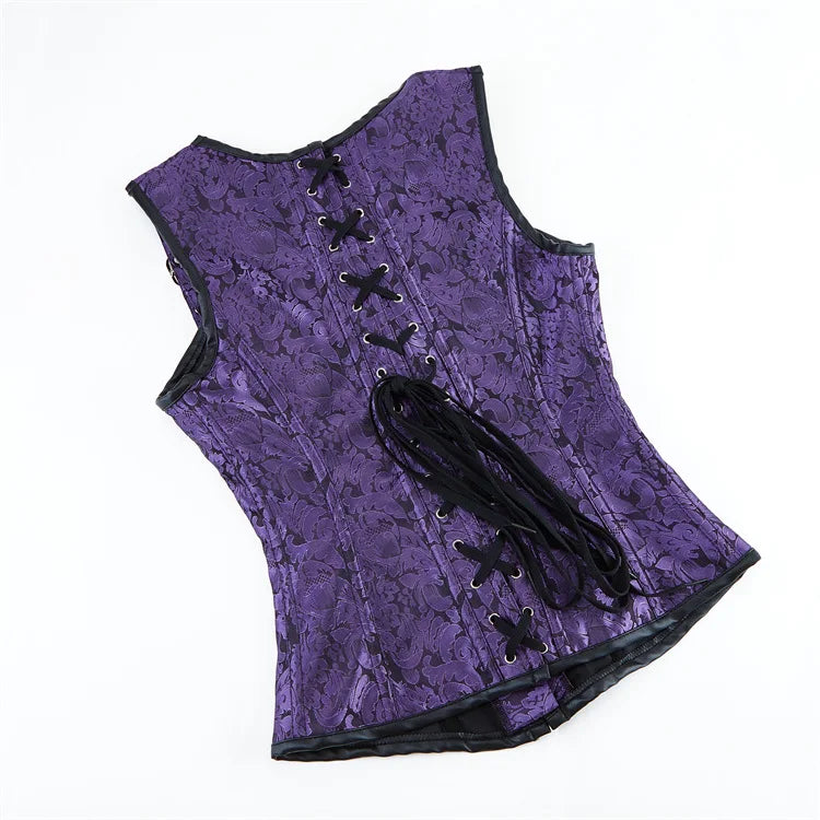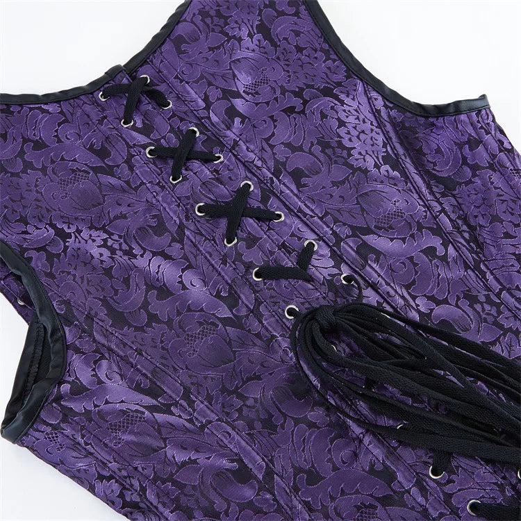 Corset steampunk mov 1XL cu închizători metalice și bretele