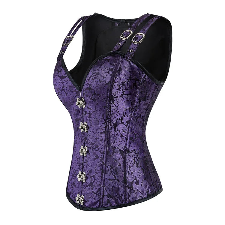 Corset steampunk mov cu închizători metalice și bretele Vezi opțiunile