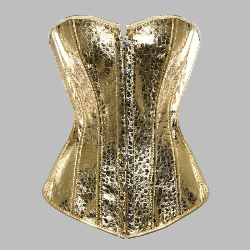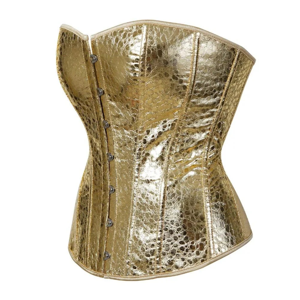 Corset steampunk auriu metalizat cu model de piele de șarpe