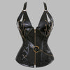 Corset gotic steampunk negru cu lanțuri, fermoare și accesorii metalice