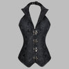 Corset gotic steampunk negru cu guler înalt și închizători metalice