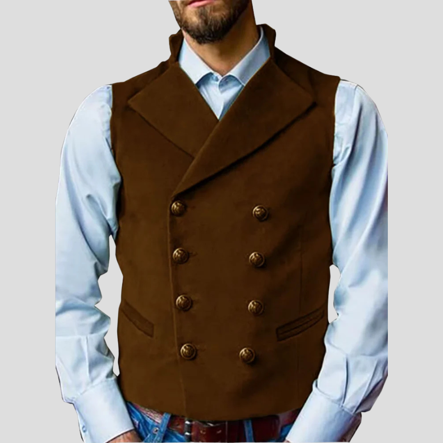 Vestă steampunk clasică maro, cambrată, cu nasturi