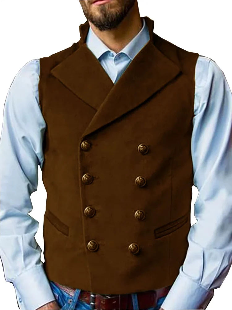 Vestă steampunk clasică maro, cambrată, cu nasturi, 3XL