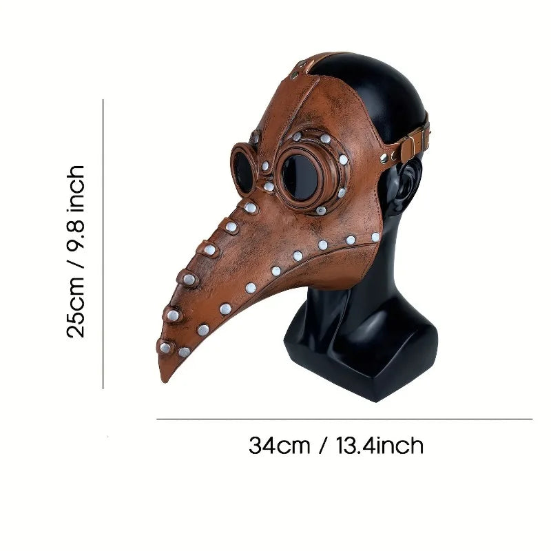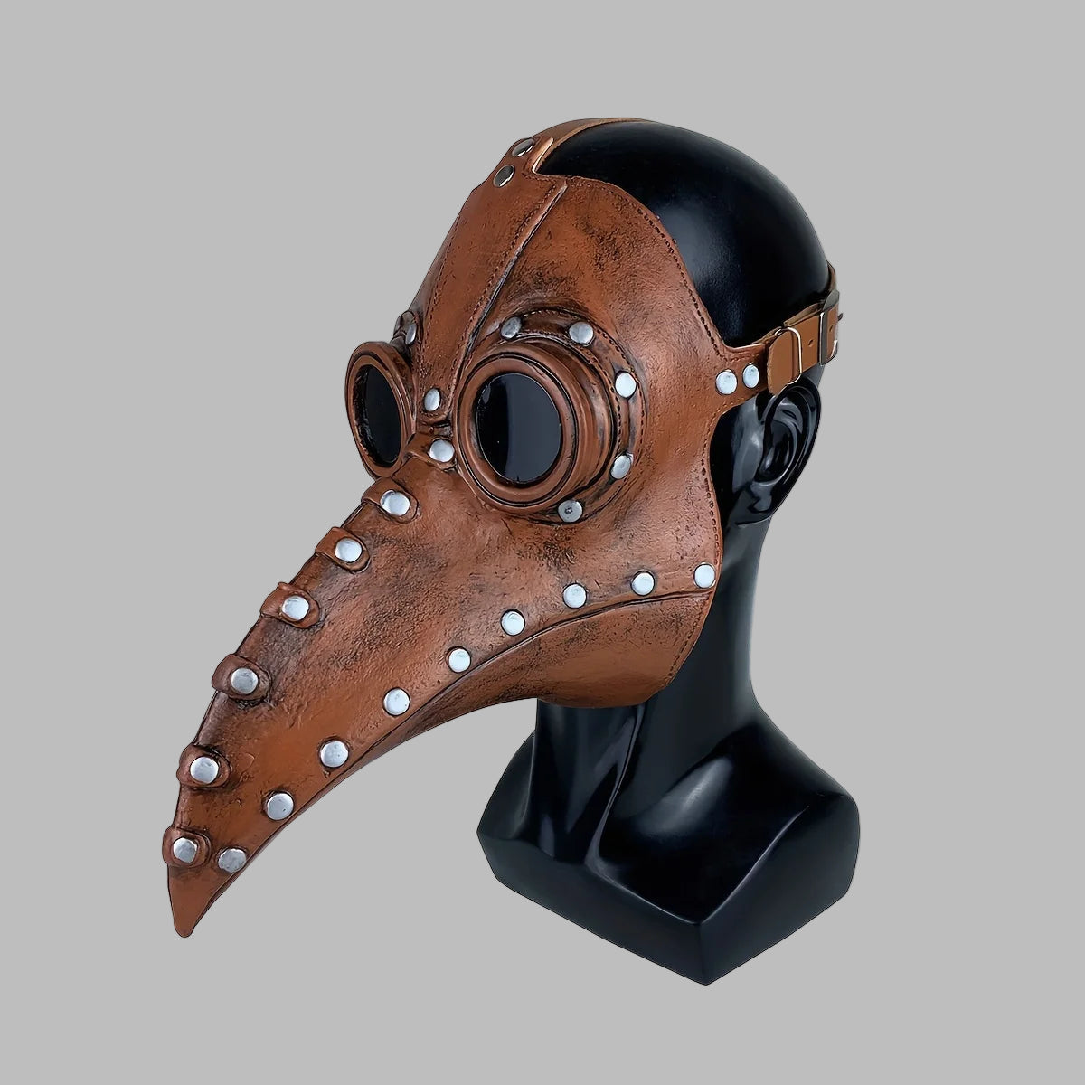 Masca de doctor ciumă steampunk din piele maro cu ținte