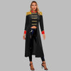 Pardesiu lung steampunk negru cu franjuri, stil ofițeresc metal