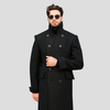 Palton steampunk negru lung, elegant, cu nasturi metalici, cu două rânduri de închidere