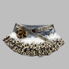 Fustă mini steampunk din denim cu imprimeu leopard și blăniță