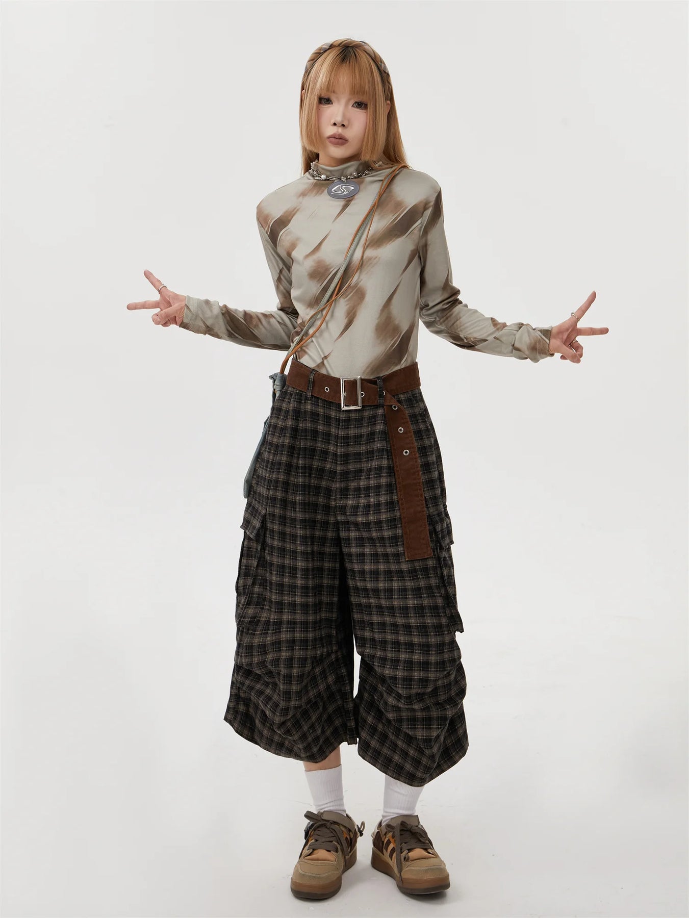 Pantaloni steampunk vintage în carouri khaki cu curea Vezi opțiunile