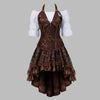 Rochie steampunk maro cu corset și bretele din piele 4XL
