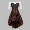 Rochie steampunk maro cu corset brodat și mâneci bufante