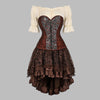 Rochie steampunk cu corset imprimat și fustă din dantelă