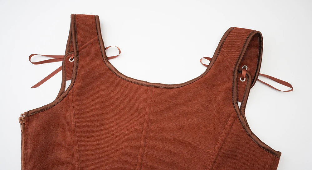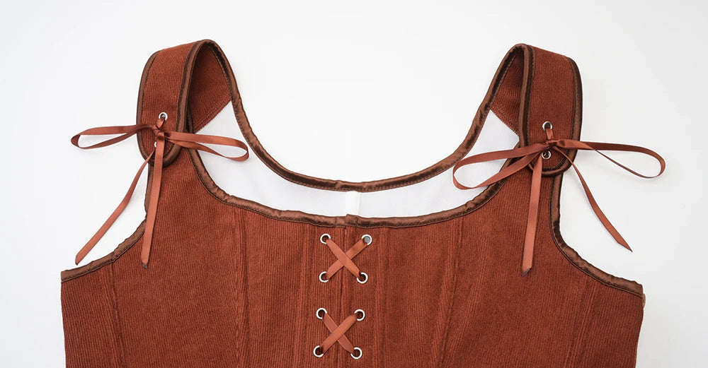 Top steampunk maro cu șireturi și bretele legate, mărimea XXL