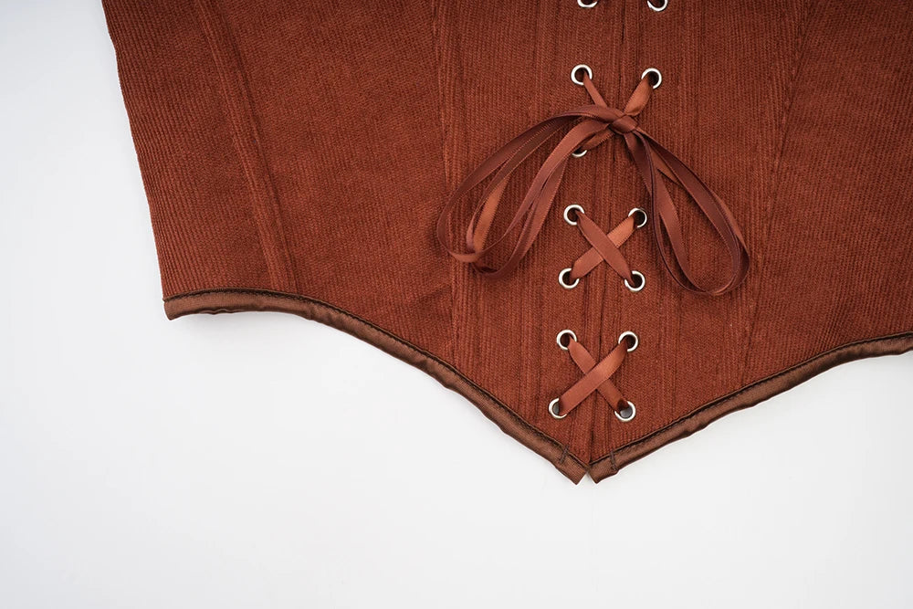 Top steampunk maro cu șireturi și bretele legate Vezi opțiunile
