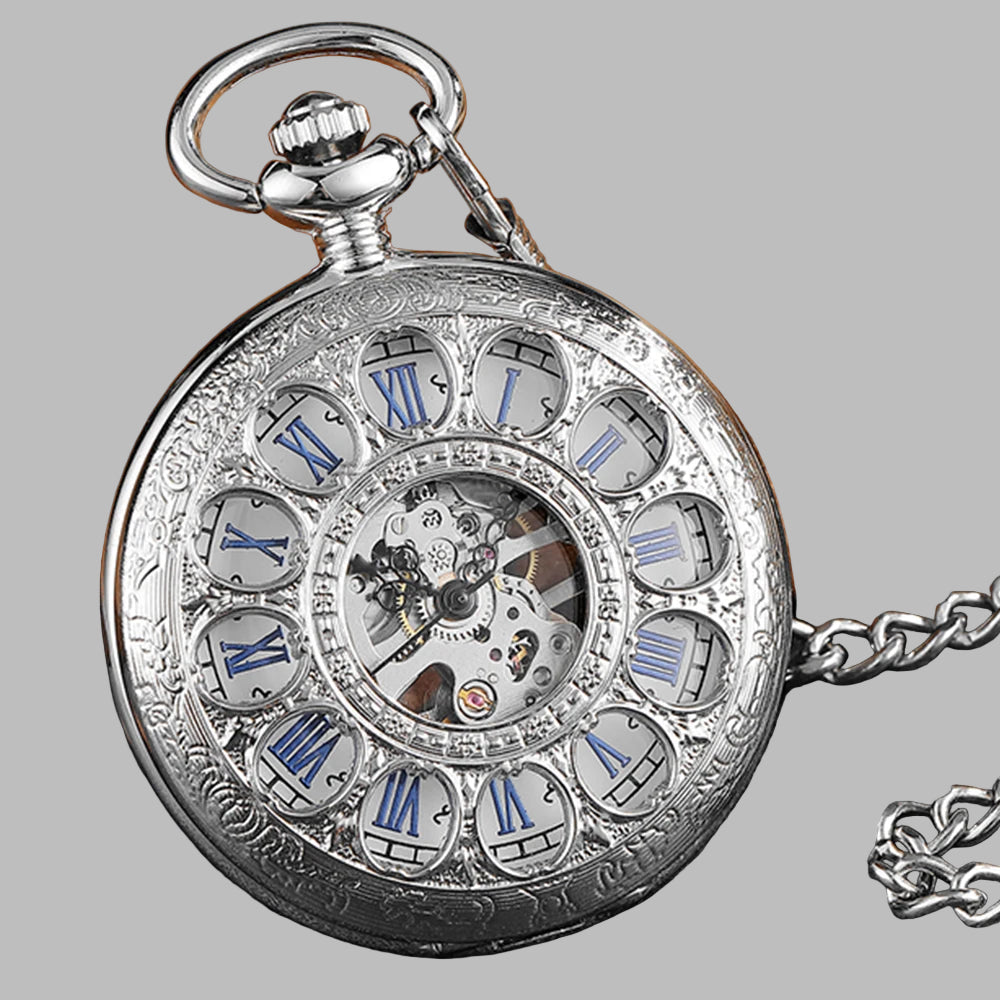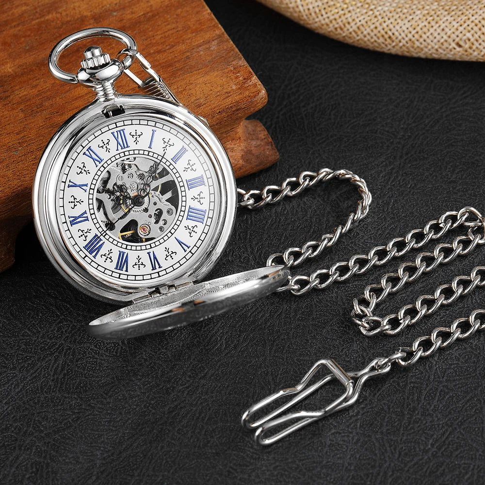 - Conținutul setului: 1 ceas de buzunar mecanic, 1 lanț Fob