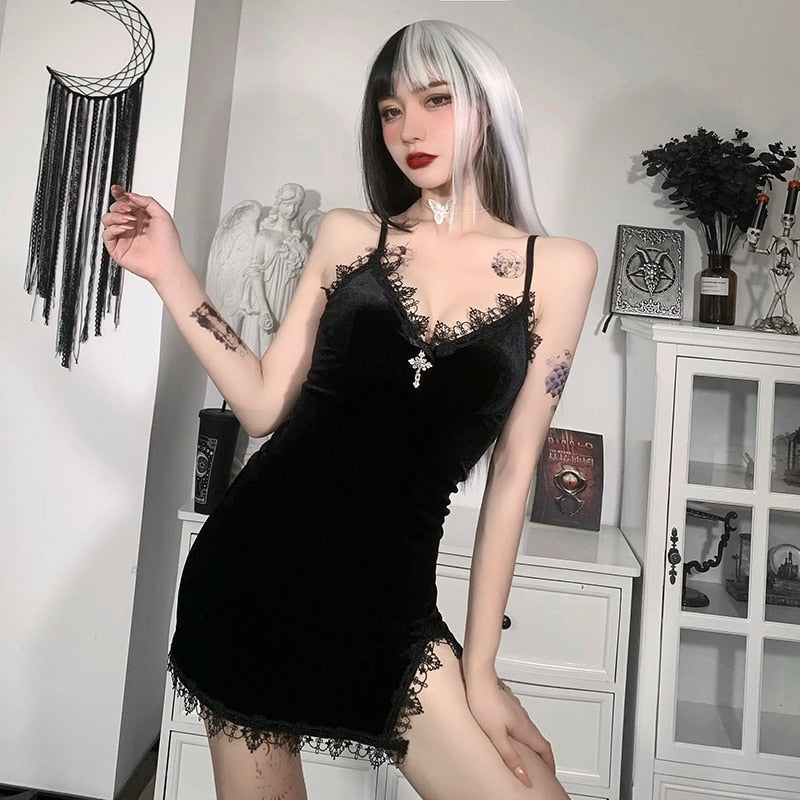 • Decorațiuni: dantelă neagră care evidențiază ținuta, cruce metalică