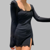 Rochie neagră din dantelă cu mânecă lungă, neagră