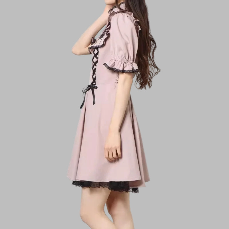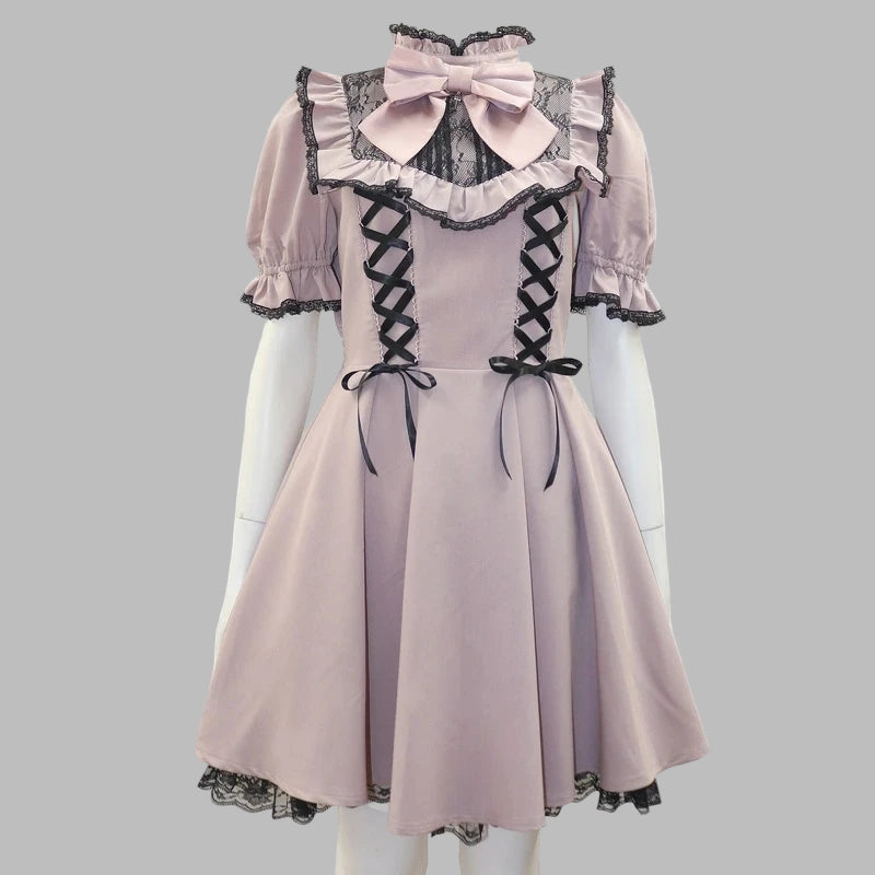 Rochie punk rock lilia cu șiret dublu și fundițe