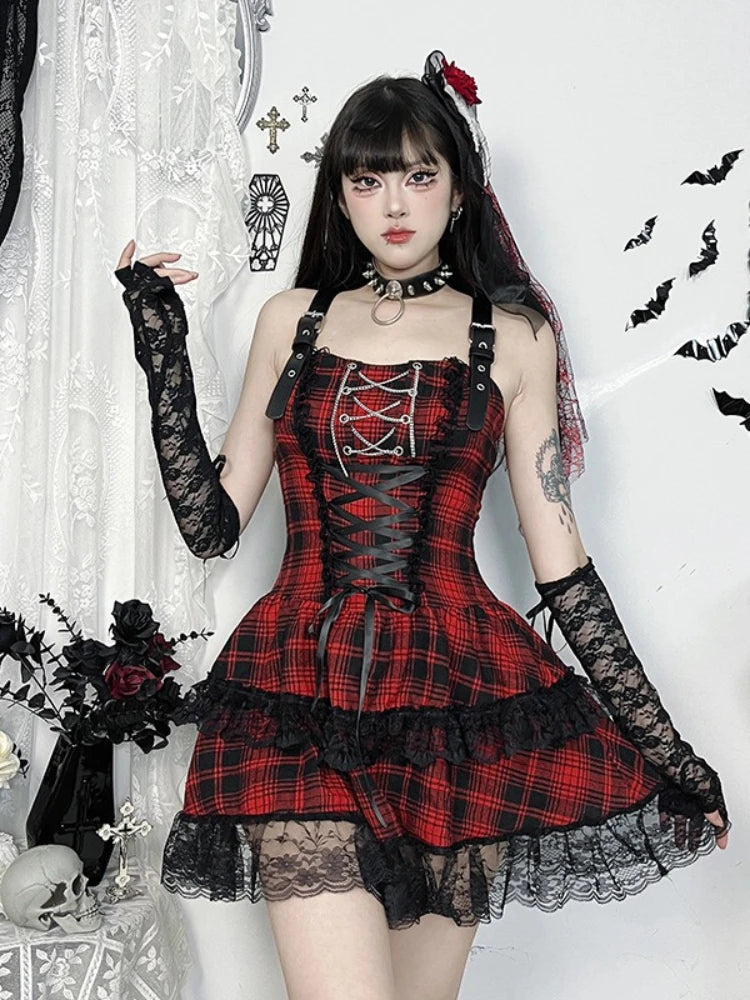 Rochie roșie rock punk cu lanțuri și dantelă Vezi opțiunile