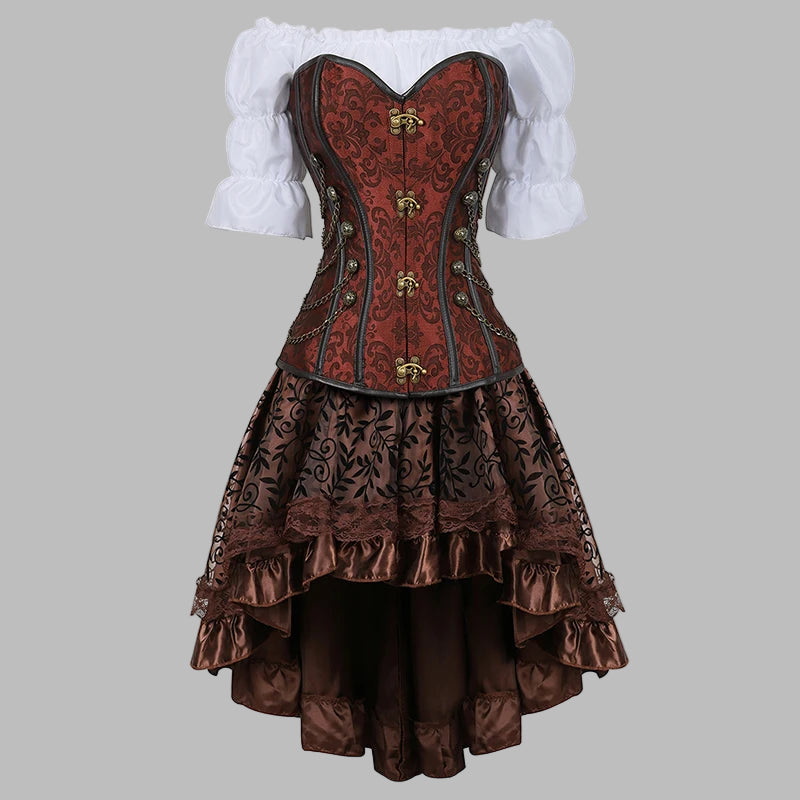 Rochie steampunk cu corset roșu și fustă cu volane Vezi opțiunile