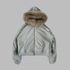 Hanorac gri rock cu glugă îmblănită și ornamente spinoase