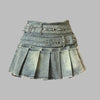Fustă mini plisată din denim gri cu bretele metalice, stil punk rock