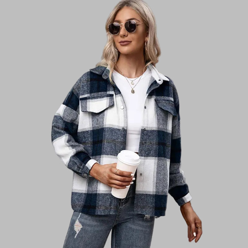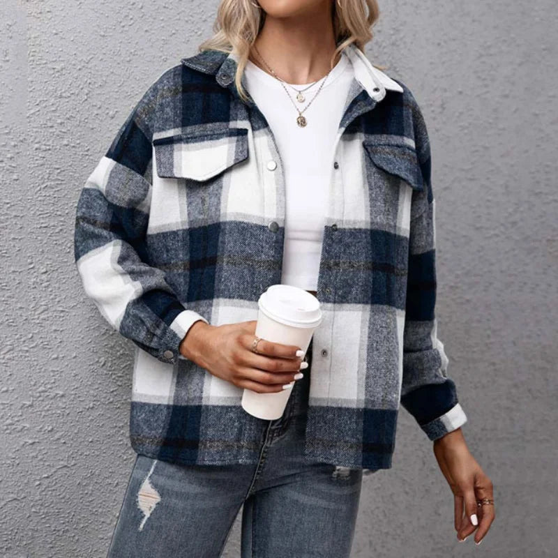 Camă gri în carouri, stil grunge, cu buzunare