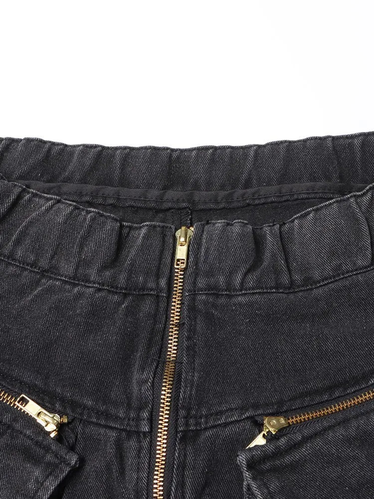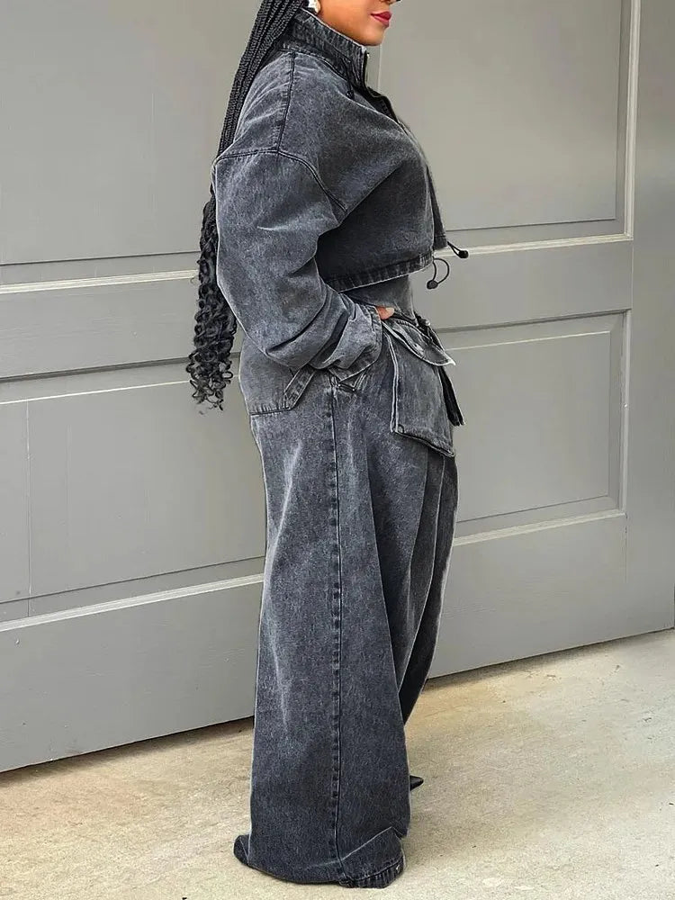 Salopetă gri punk din denim cu buzunare cargo Vezi opțiunile