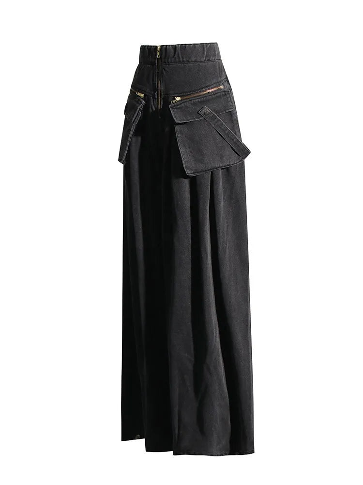 Salopetă gri punk din denim cu buzunare cargo