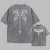 Tricou gri vintage metal cu aripi de înger, stil grunge