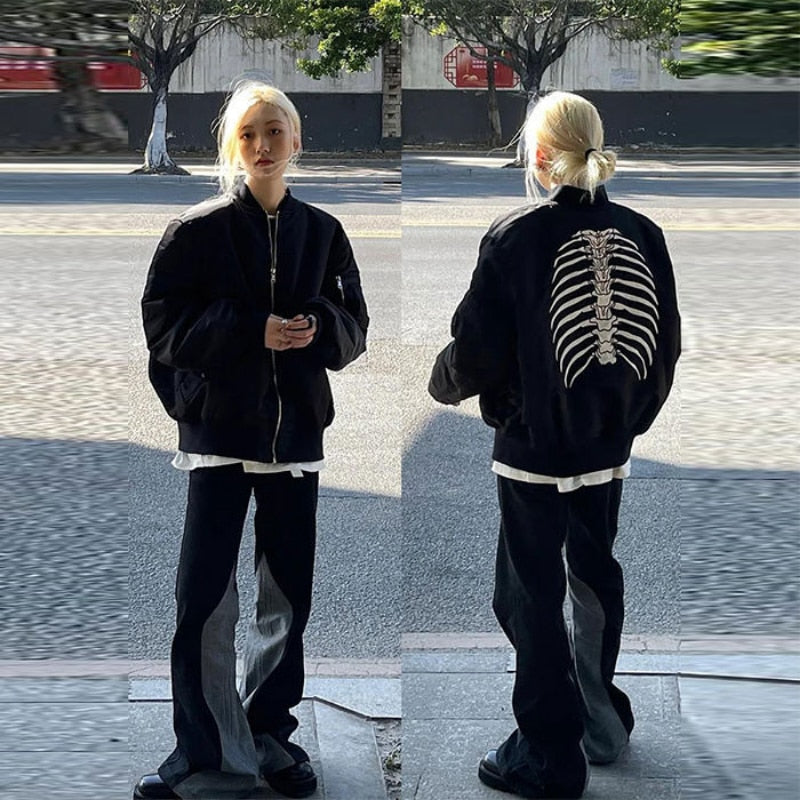 Palton „Skeleton” negru, îmbrăcăminte streetwear