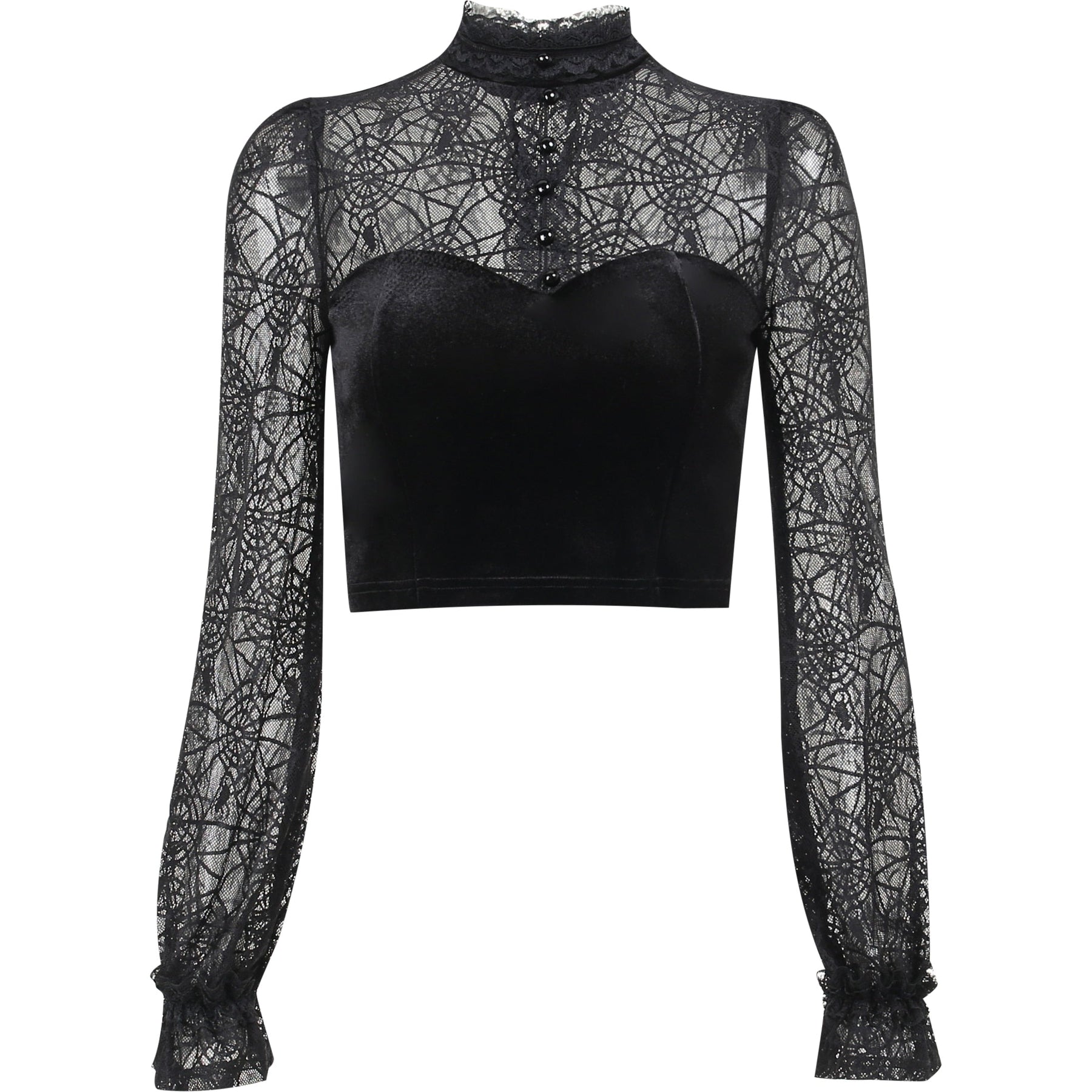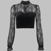 Creat pentru cele îndrăznețe și curajoase, Topul nostru Gothic se mulează pe formele tale, evidențiindu-le. Decolteul în V adaugă un aer misterios, iar detaliile din dantelă și drapajele conferă o eleganță senzuală. Materialul său din catifea este ușor elastic, garantând confort și stil în timp ce îți exprimi unicitatea.
