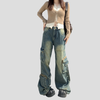 Blugi cargo verzi Rock, cu efect uzat și buzunare vintage Vezi opțiunile